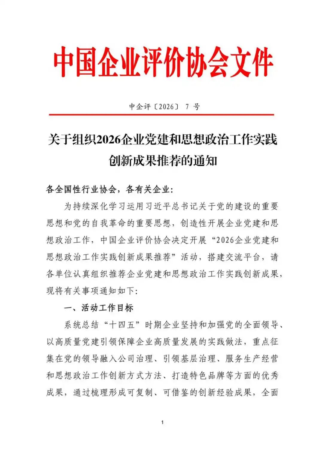 为持续深化学习运用习近平总书记关于党的建设的重要思想和党的自我革命的重要思想,创造性开展企业党建和思想政治工作,中国企业评价协会正式启动2026企业党建和思想政治工作实践创新成果推荐活动,现面向各企业征集党建和思想政治工作实践创新成果。具体事项如下: