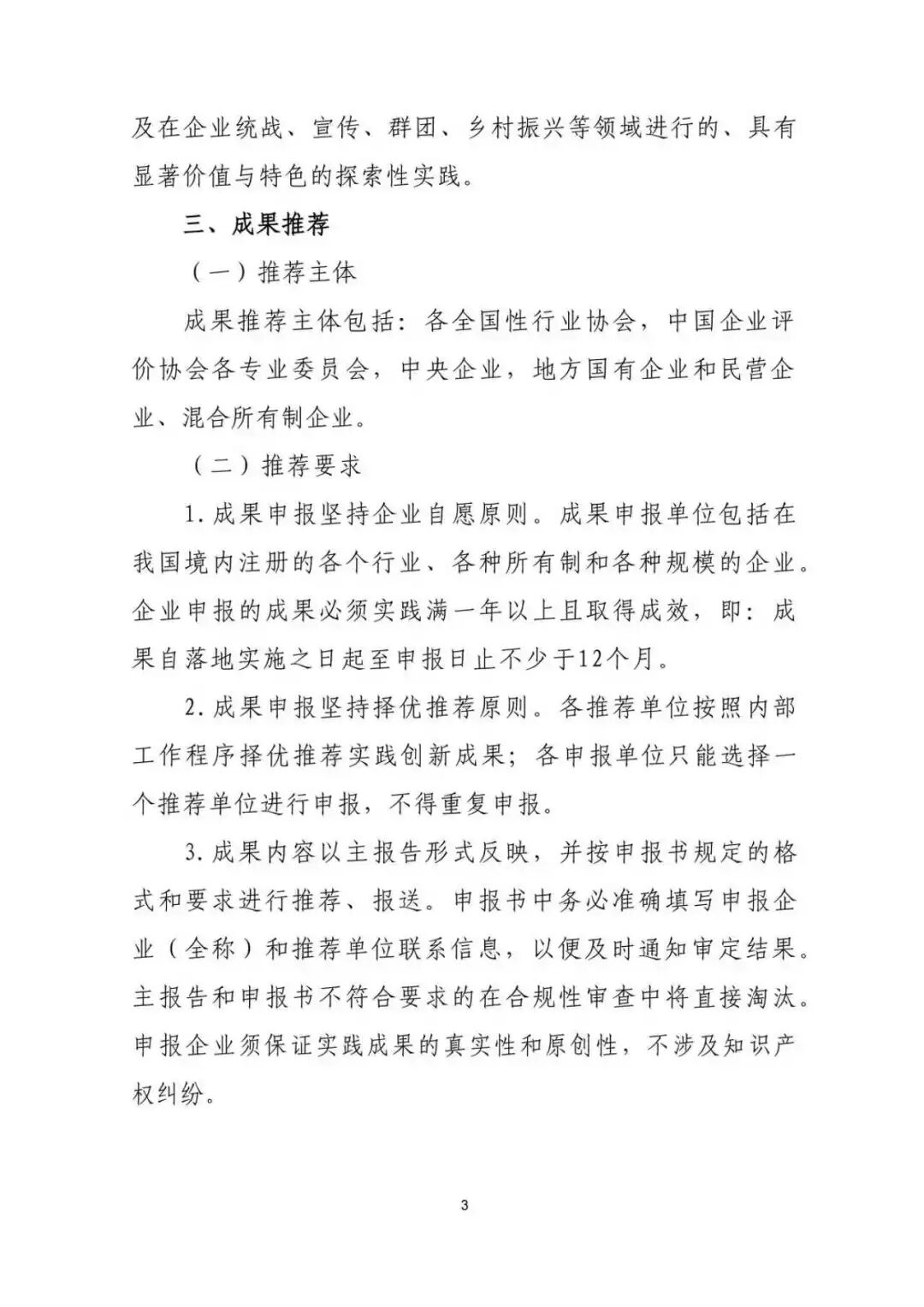 成果推荐主体包括:各全国性行业协会,中国企业评价协会各专业委员会,中央企业,地方国有企业和民营企业、混合所有制企业。