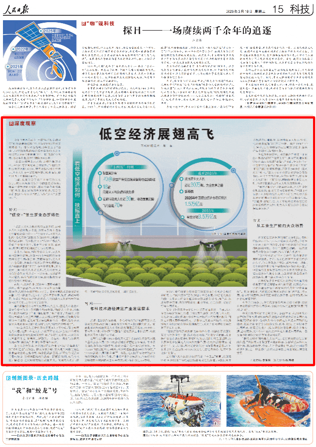“系留无人机为救灾提供应急照明、运输无人机为农民搬运收成、蜂群无人机在城市上空描绘动态画卷……”近些年来,中国无人机的“花式用法”屡屡成为国内外社交媒体上的热议话题。低空技术正以“低空+”模式与传统产业深度融合,催生不少新业态、新场景,展现出强大的创新活力与市场潜力。