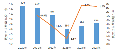 2020-2025民营企业数量及增长率